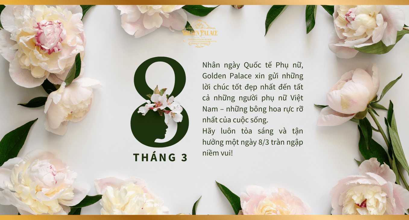 Nhân ngày Quốc tế Phụ nữ 8/3, Golden Palace xin gửi lời chúc tốt đẹp nhất đến tất cả những người phụ nữ tuyệt vời! Chúc chị em luôn rạng rỡ, hạnh phúc và thành công trong cuộc sống.