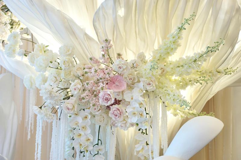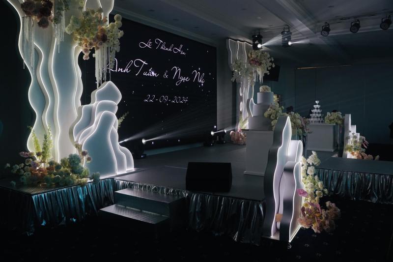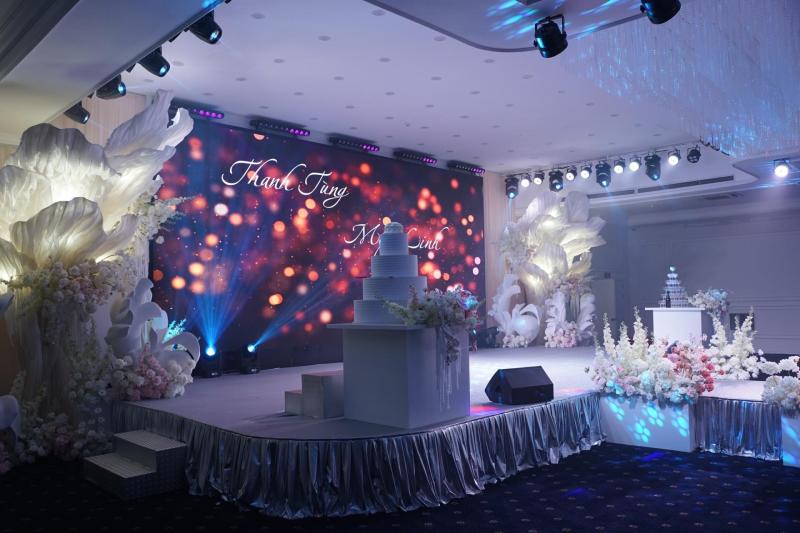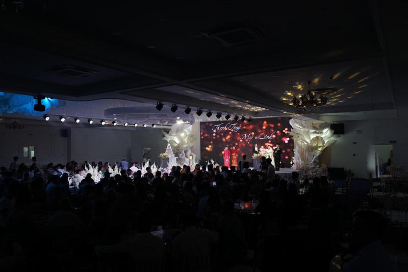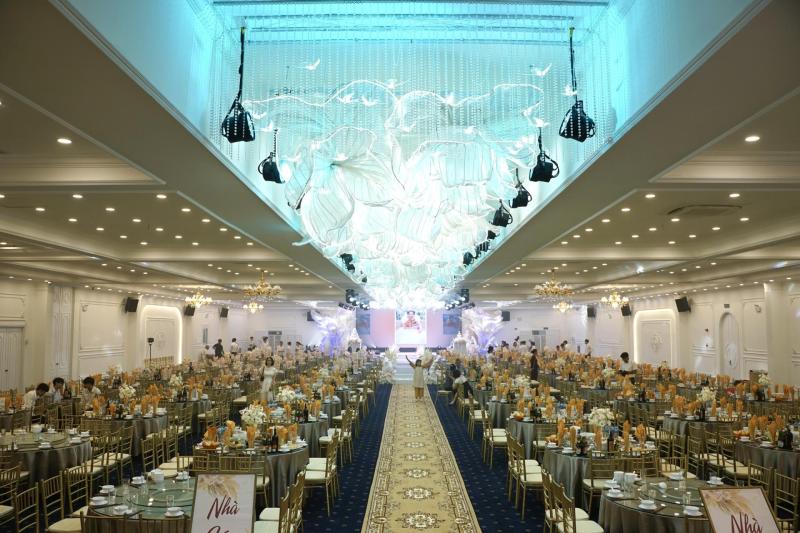 Toàn bộ không gian được trang trí theo tone màu chủ đạo là trắng – vàng, điểm xuyết là những bông hoa khổng lồ được thiết kế riêng với dải led nhiều màu cùng những điểm nhấn đặc sắc không gian lãng mạn, tinh tế, sang trọng, … Tại đây được trang bị hệ thống âm thanh hiện đại, màn hình LCD tối tân, thiết kế không cột cùng sân khấu lớn và sàn catwatk dài phù hợp cho tổ chức cưới hỏi, hội nghị, tiệc sinh nhật và chương trình sự kiện quy mô.